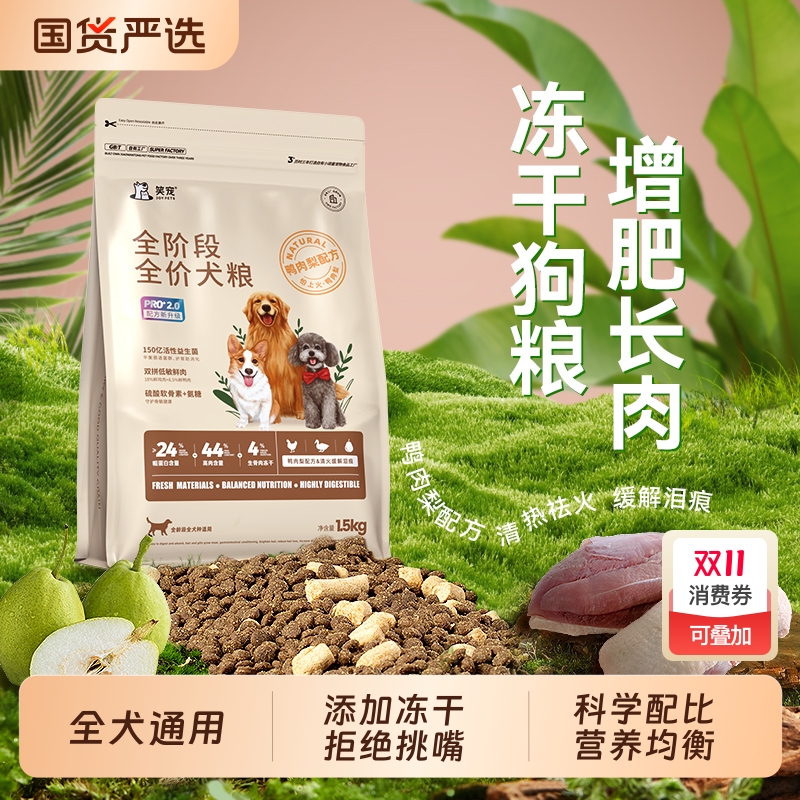 笑宠鸭肉梨全价冻干狗粮成犬通用型大中小型犬专用官方旗舰店正品