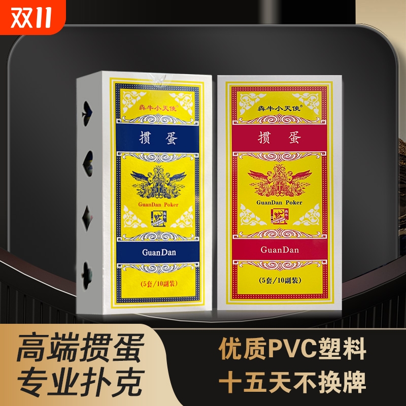 铁盒塑料PVC掼蛋专用扑克牌细长窄版防水防折打不烂惯蛋高颜值档