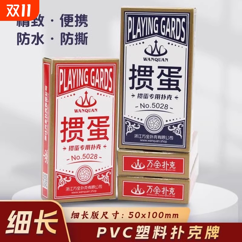 防折塑料掼蛋专用扑克牌细长版PVC防水万全惯蛋比赛卜克牌窄牌