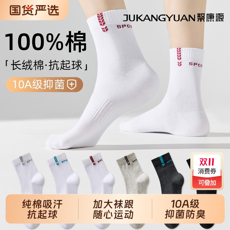 纯棉袜子男款秋冬抑菌防臭运动袜