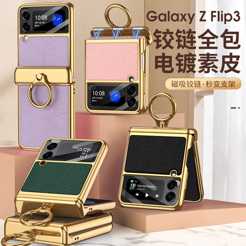 适用于 三星SM-Flip3手机壳侧边吸磁铰链电镀硬边F7110