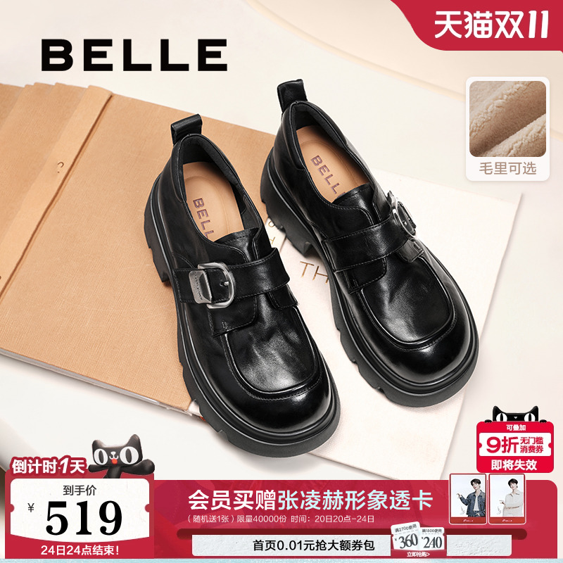 张凌赫推荐百丽黑巧乐福小皮棉鞋厚底加绒冬季女黑色单鞋雪地靴预