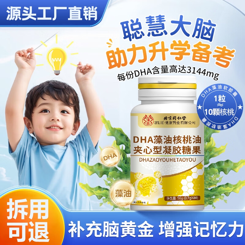 北京同仁堂藻油核桃油软胶囊补脑提高记忆力凝胶糖果健康大脑鱼油
