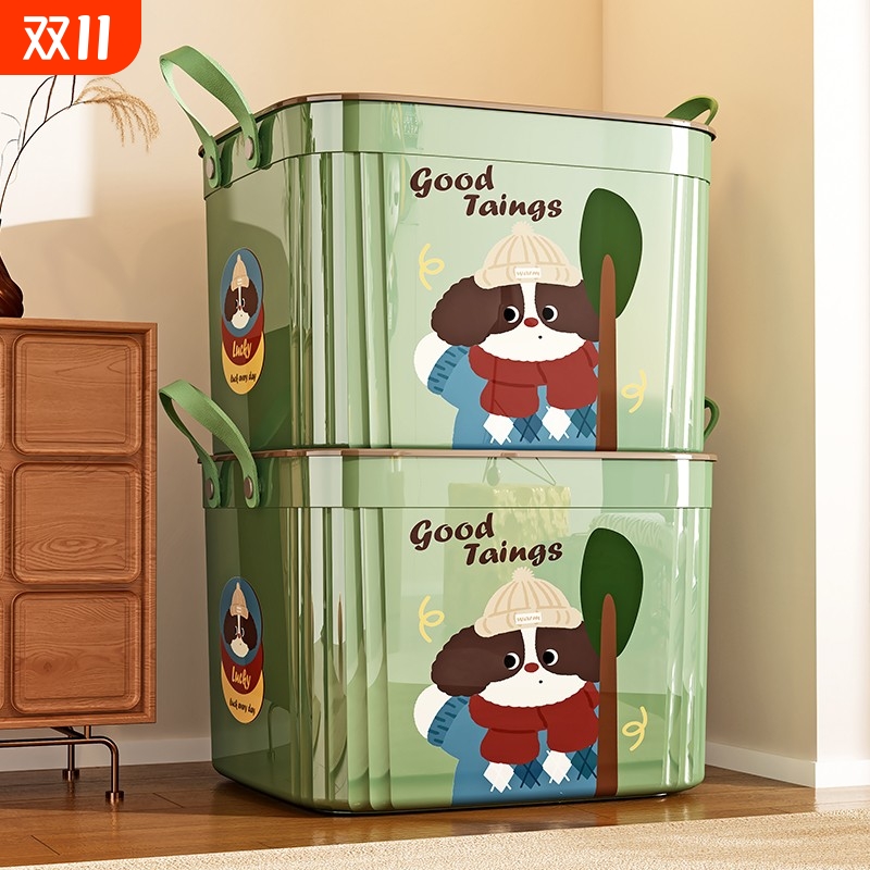 大容量带盖杂物收纳盒桌面整理箱新款家用卡通收纳箱子手提高颜值