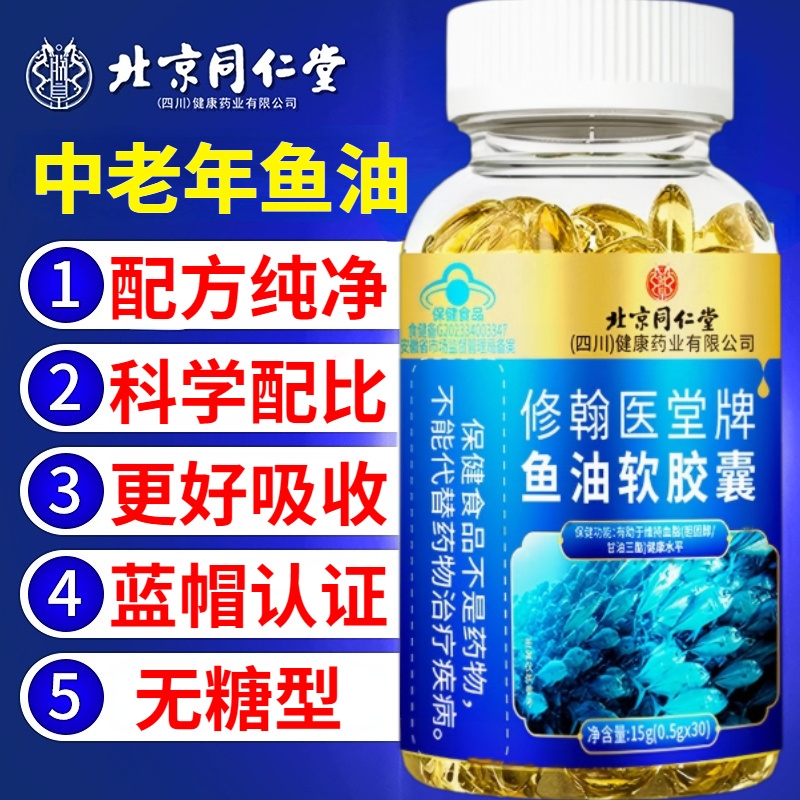 北京同仁堂鱼油软胶囊成人中老年正品官方国产可搭配深海鱼肝油吃