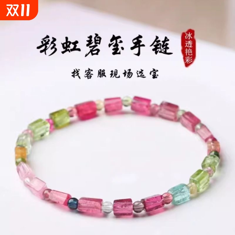 碧玺手串冰种彩虹碧玺手链原矿散珠方糖手饰女饰品