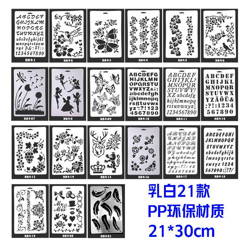 新款直销 儿童PP模板镂空绘画模板DIY蝴蝶字母数字手帐工具尺环
