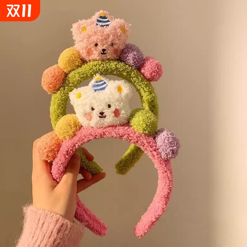 可爱小熊洗脸毛毛发箍女敷面膜专用化妆毛绒不伤发发捆头箍头饰