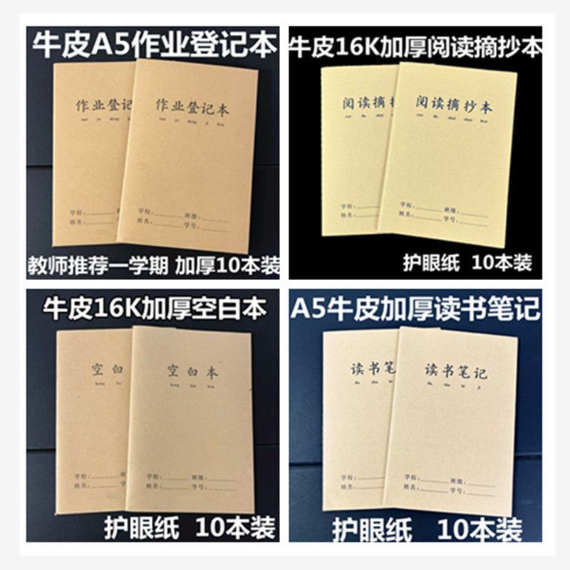 A5牛皮超厚作业登记本田字中方格空白草稿读书阅读摘抄练习作业本