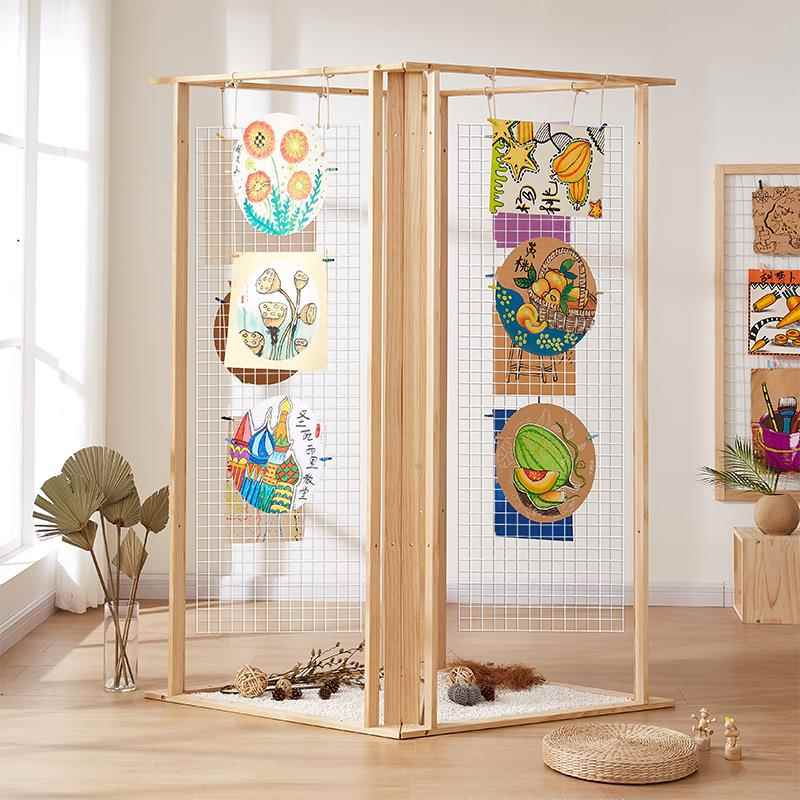幼儿园画展展会书法261作品屏风隔折移屏风叠网断格展示架落动地