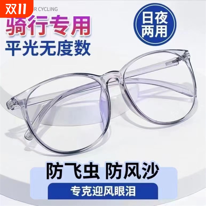 骑车专用防风眼镜防风沙防蚊防蓝光防辐射平光眼镜无度数大框显瘦