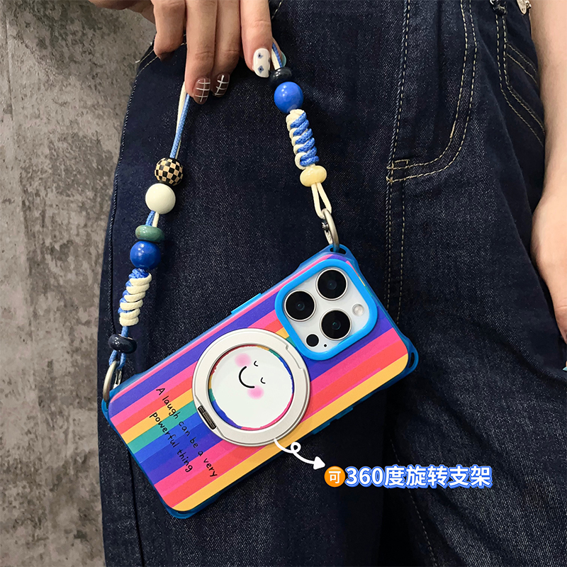 彩条纹笑脸支点壳手机壳斜挎挂链