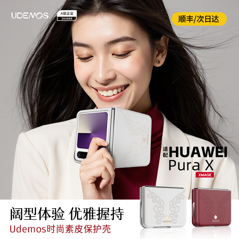 UDEMOS·决色适用华为PuraX手机壳新款折叠屏皮质指环支架