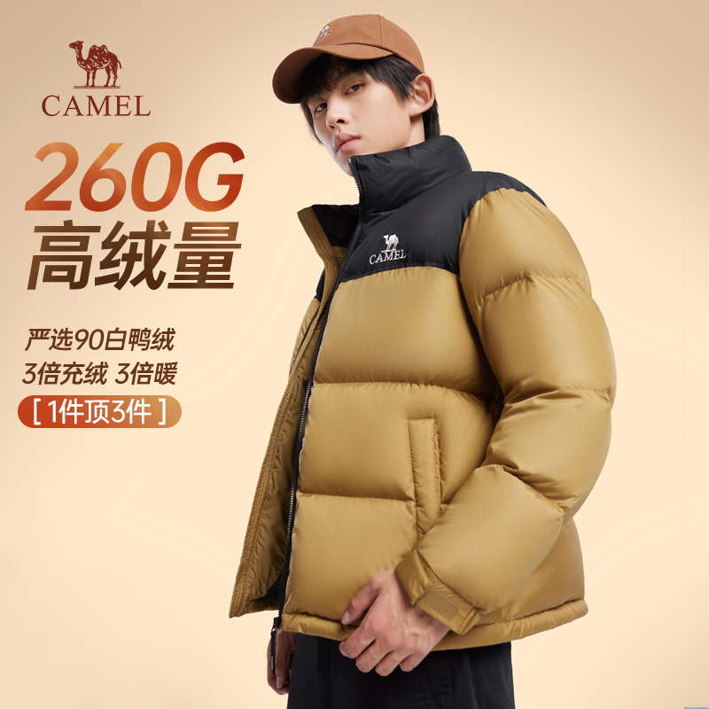 火山短款羽绒服骆驼连帽