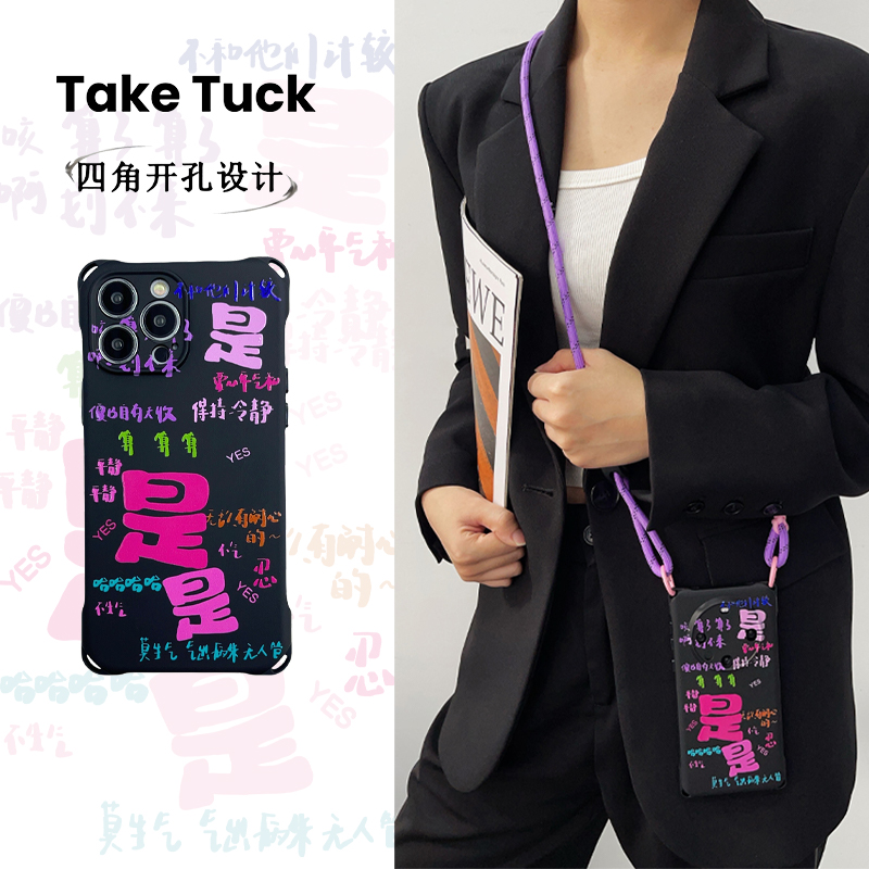 是是是文字斜挎挂绳硅胶手机壳