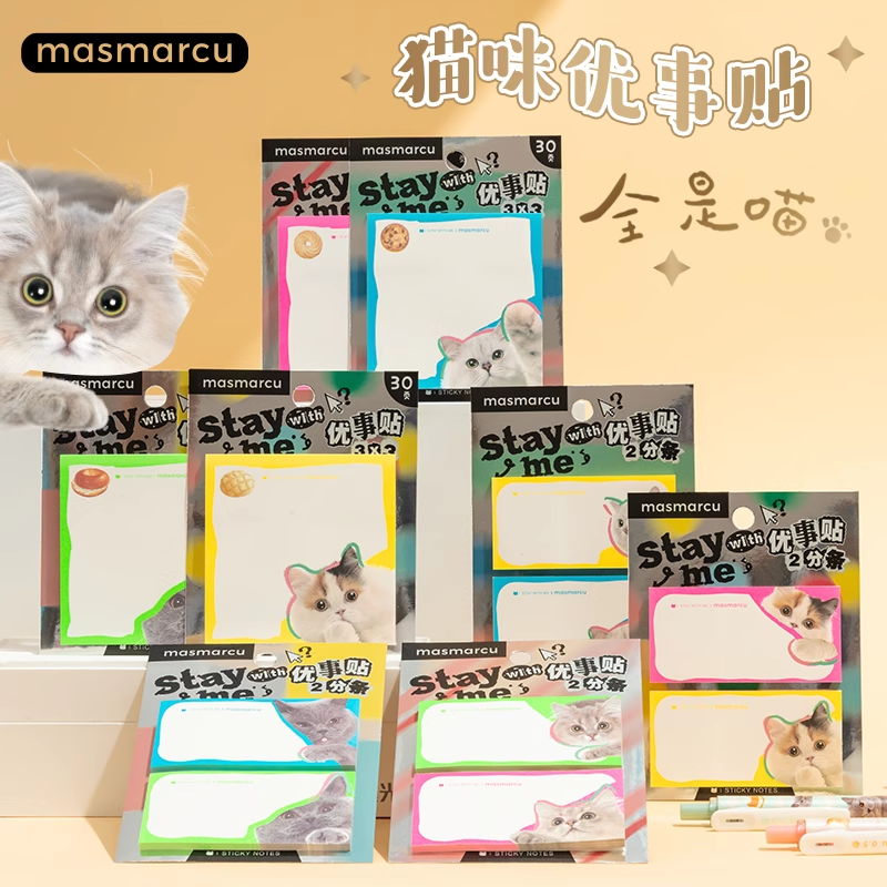 晨光全是喵可爱猫咪优事贴高颜值方形便利贴小猫图案学生用便签纸考研