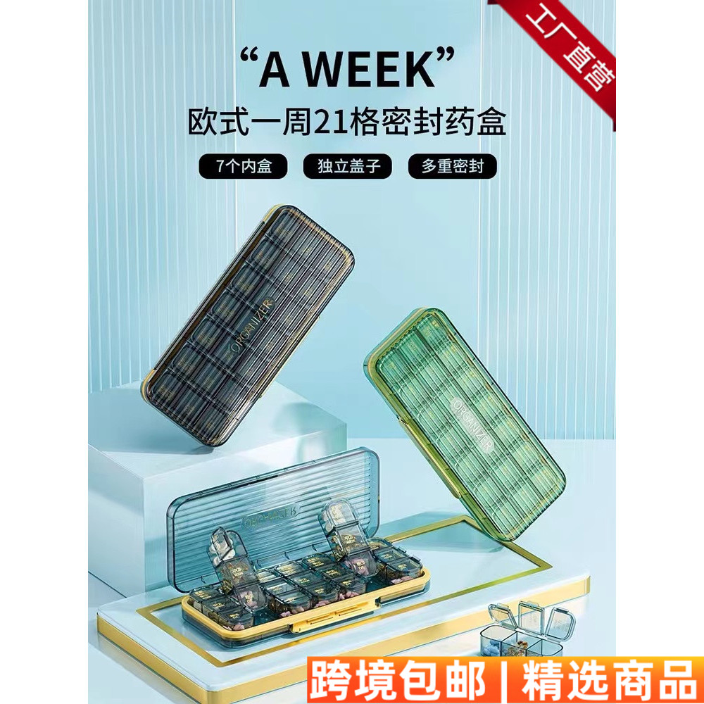 七天药盒分装药物器一周收纳密封防潮大容量一日三餐便携式早午晚
