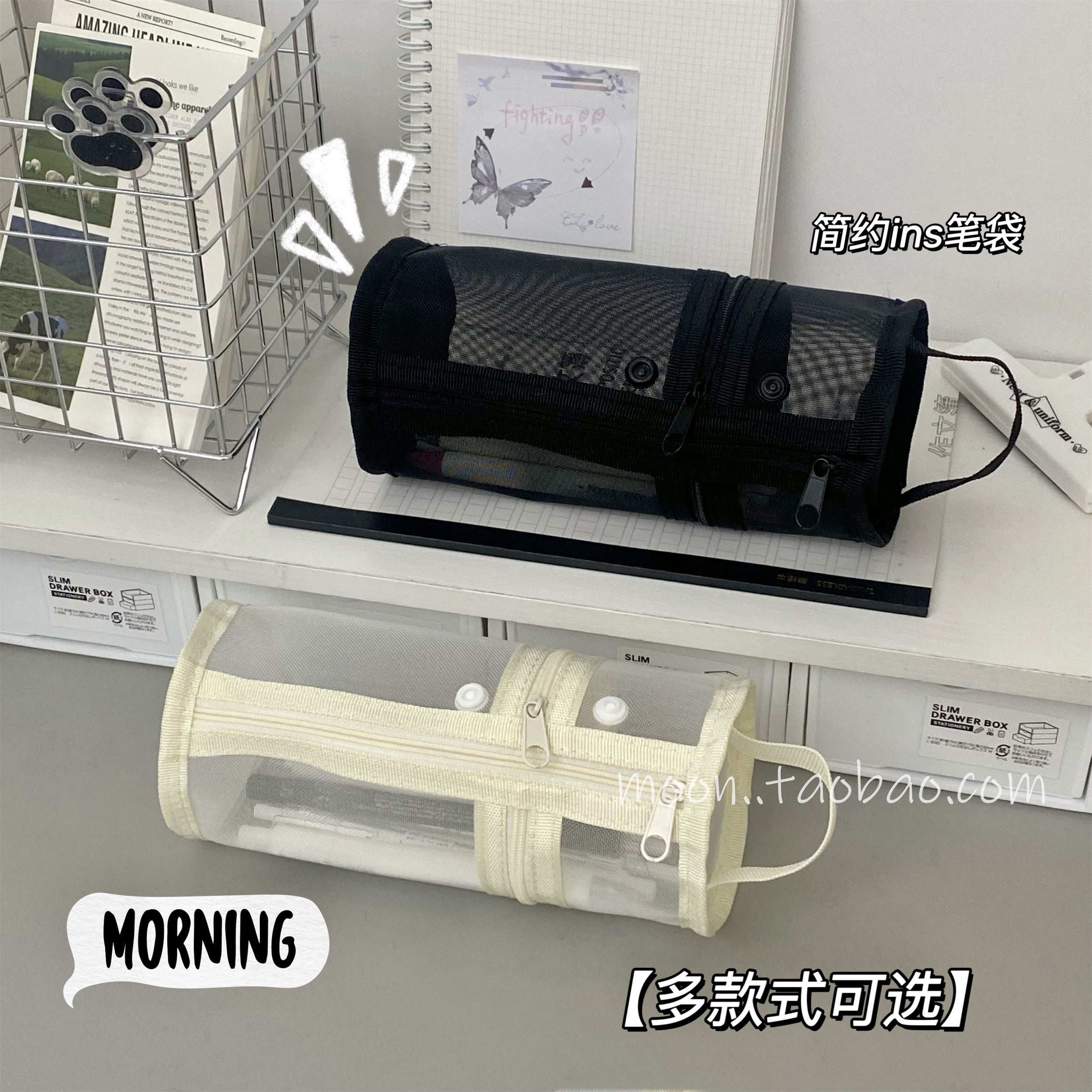 简约ins网纱笔袋纯色文具袋学生专用大容量铅笔盒女生笔筒收纳包