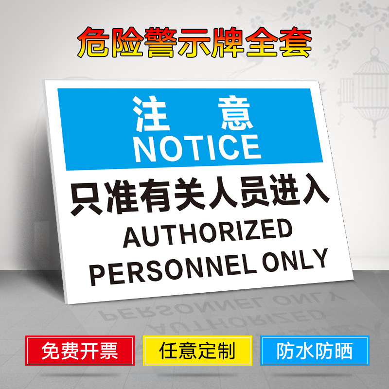 只准有关人员进入 定制防水粘贴纸PVC板铝牌车间验厂OHSA危险