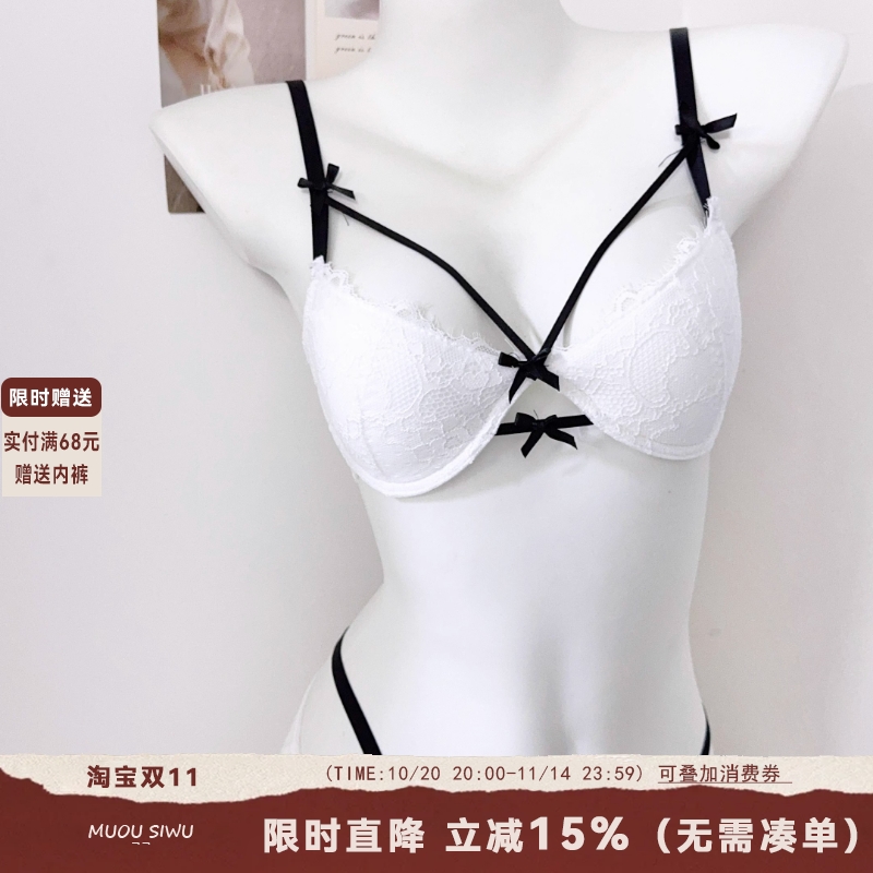 性感交叉蕾丝内衣女大胸显小胸聚拢有钢圈上托防下垂纯欲文胸套装