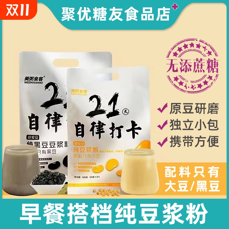 纯豆浆粉黄豆黑豆控无糖精代餐食品旗舰店孕妇期早餐糖友人老人
