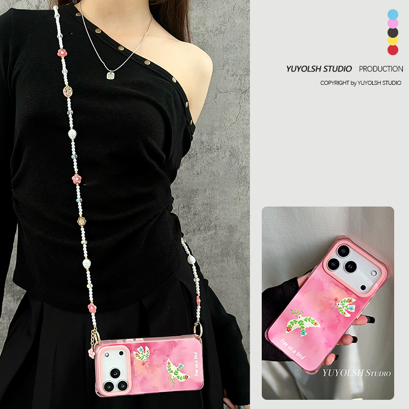 粉比翼飞鸟手机壳斜挎手提挂链