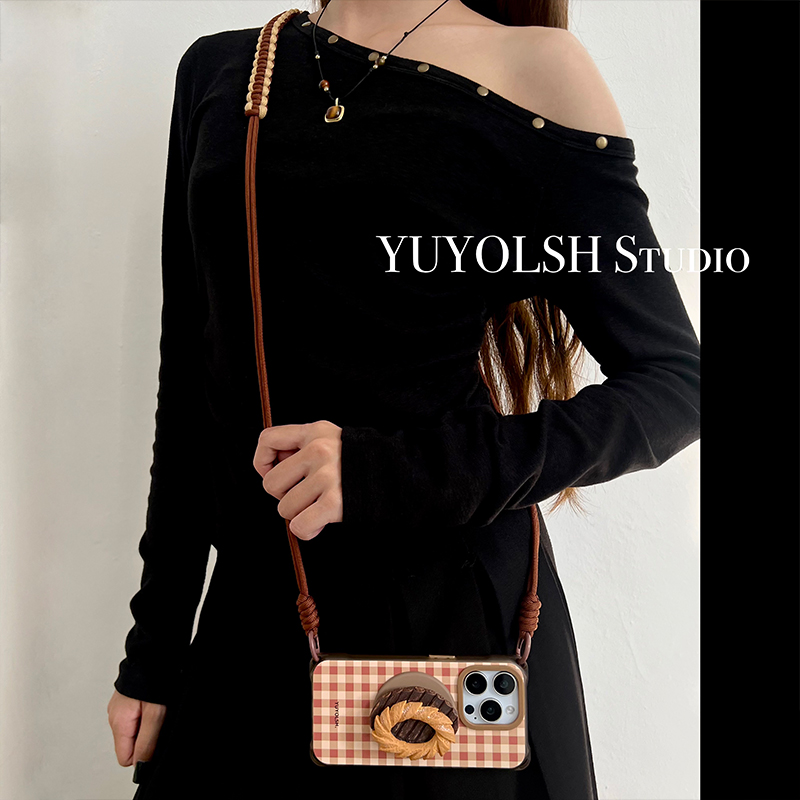 面包磁吸支架手机壳斜挎手提挂绳