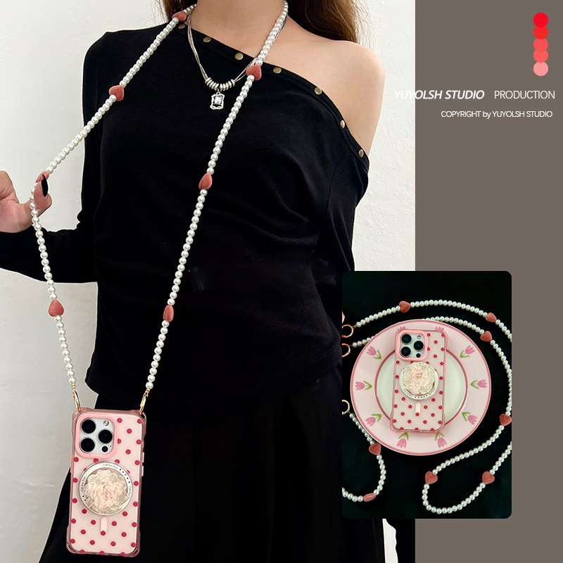 莓果波点支架手机壳斜挎手提挂链