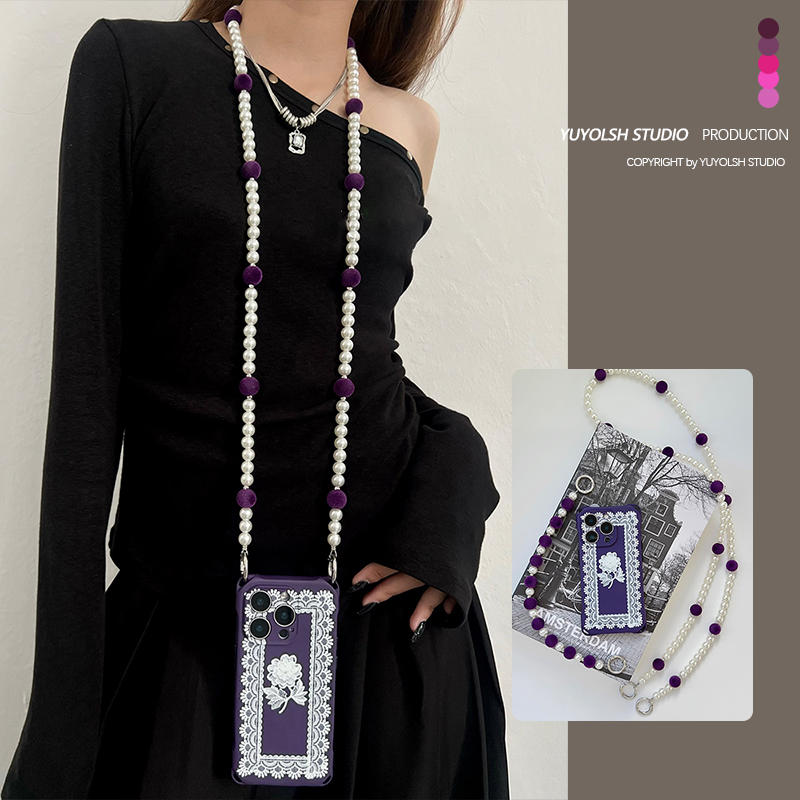 法式蕾丝花手机壳斜挎手提挂链
