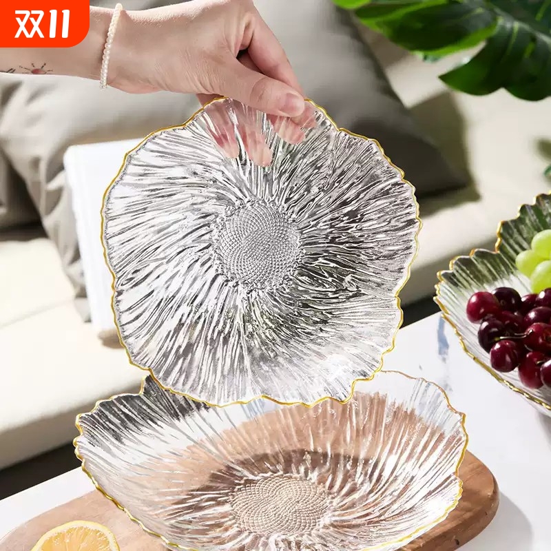 花瓣玻璃果盘客厅上档次前台办公室果盘轻奢ins风干果糖果盘套装