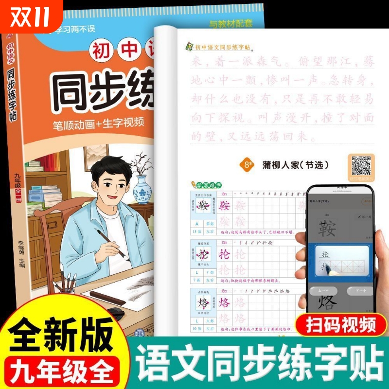 九年级上册语文字帖人教版 写字课课练9年级上下册课本同步练字帖R