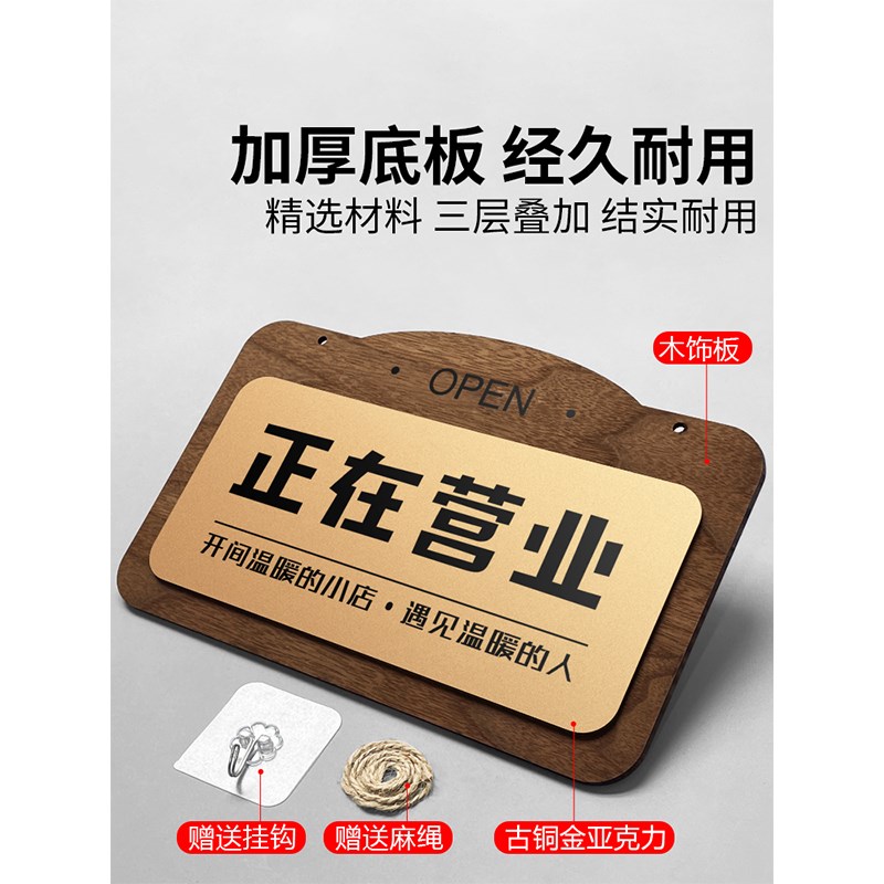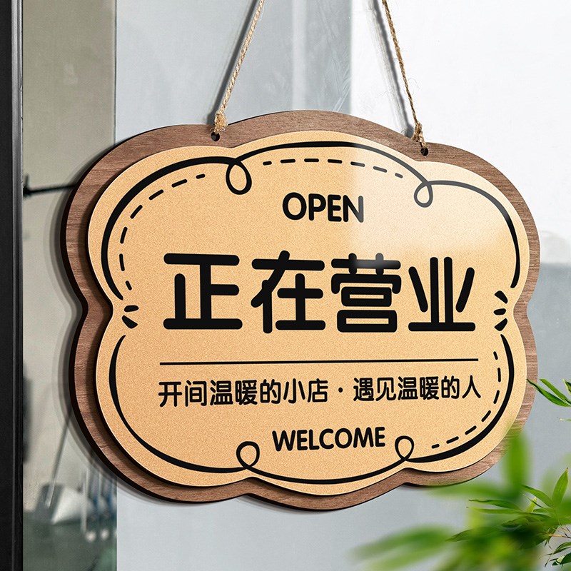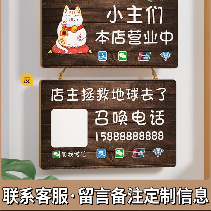 正在营业中挂牌双面创意店主有事外出马上回来电话提示空调开 放欢迎