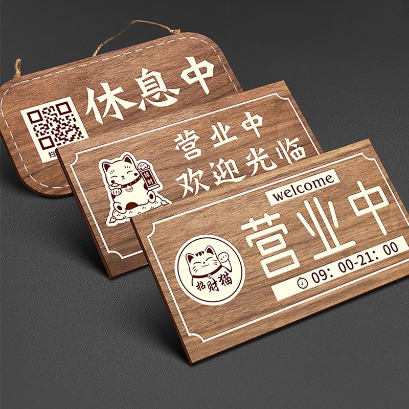 正在营业中欢迎光临双面挂牌空调开放休息中有事外出马上回来正常