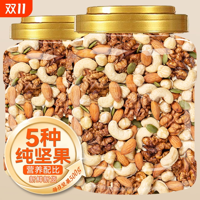 每日坚果混合综合干果仁大罐装500g纯坚果小包干果休闲早餐零食