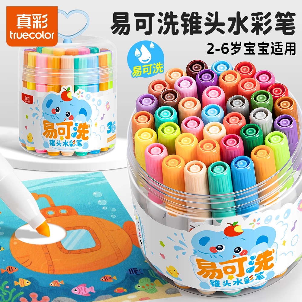 真彩水彩笔小学生专用软头幼儿园美术专用儿童可水洗无毒性不脏手