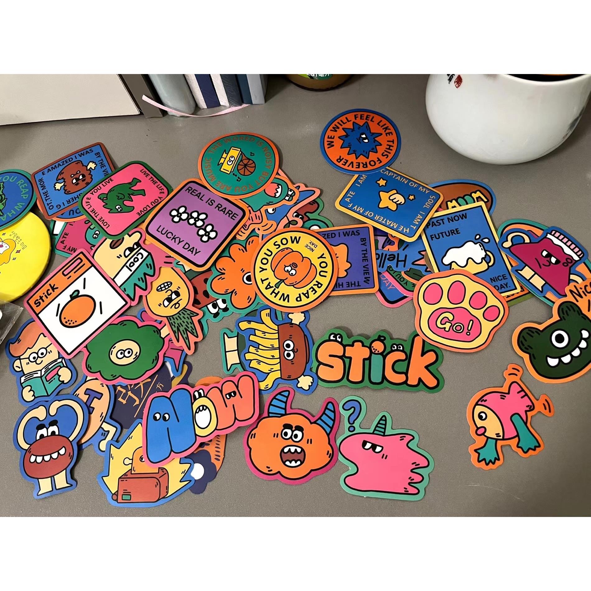 90张奇奇怪怪东西贴纸丑萌搞怪笔记本手机壳水杯手账贴纸防水贴画