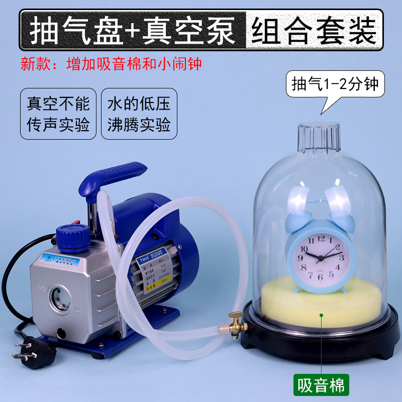 真空罩实验抽气盘真空玲闹钟j02016旋片式真空泵低压沸腾声音不