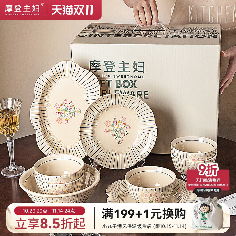 舍里精致耐高温陶瓷菜盘碗碟套装
