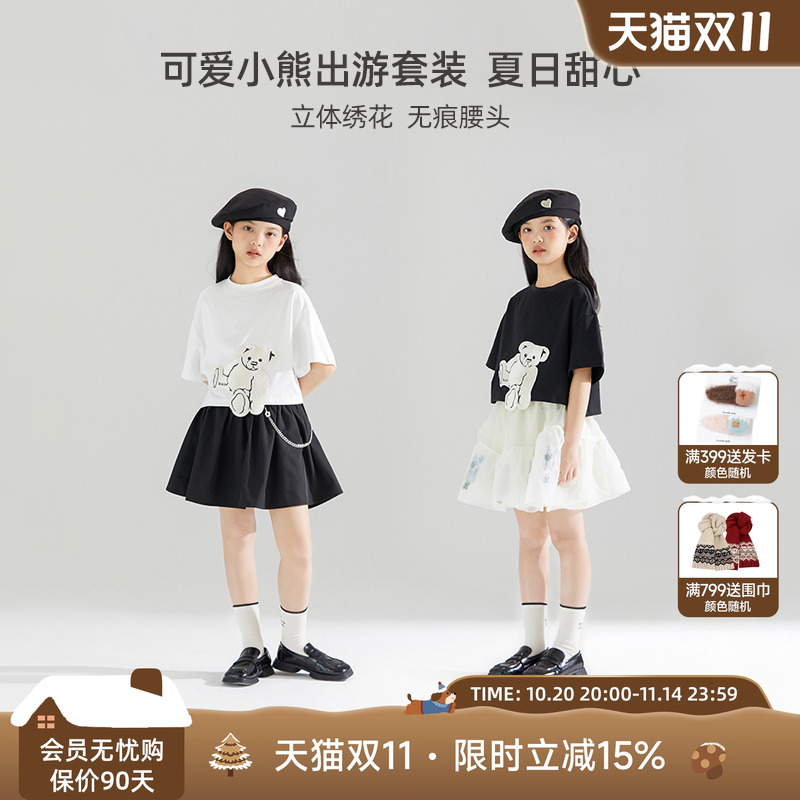 MUCMUKN小熊钉珠绣花T恤