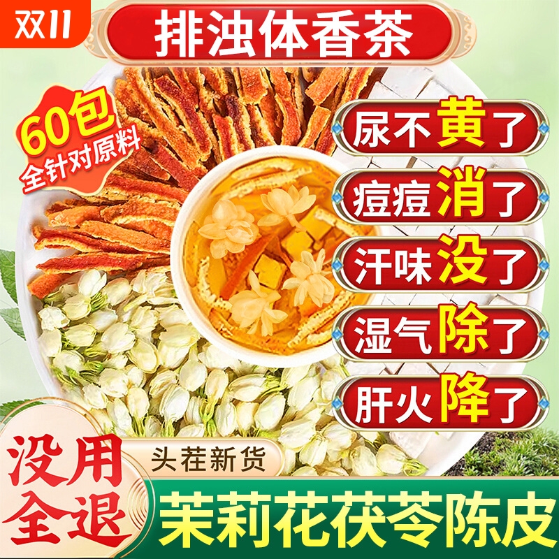 茉莉花茯苓陈皮官方正品中药材排浊茶香体组合茶包泡茶泡水喝饮品