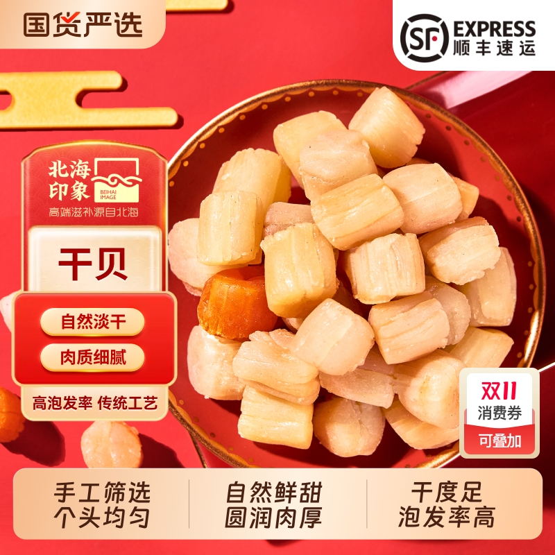 北海印象干贝瑶柱500g淡干海鲜干货扇贝肉煲汤煮粥送礼礼品礼