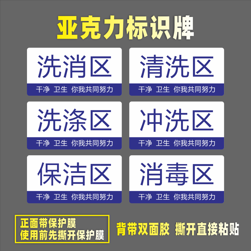 消毒区亚克力标识牌洗消无菌清洗涤保洁浸泡涮洗刷操作切配加工区