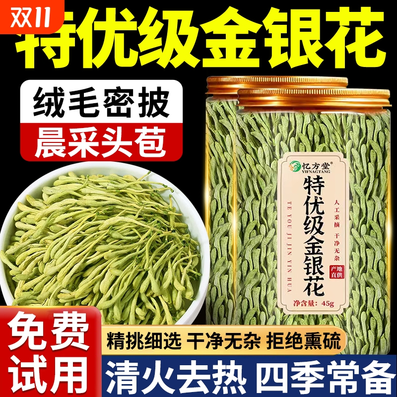 金银花菊花茶去火清热解毒干花干货中药材野生特级正品官方旗舰店