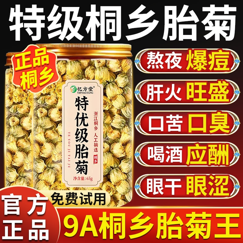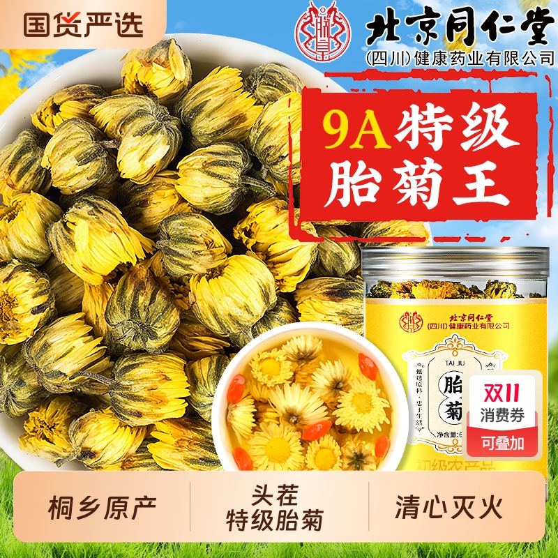 同仁堂特级胎菊王清热去火桐乡原产天然贡菊花茶正品官方旗舰店