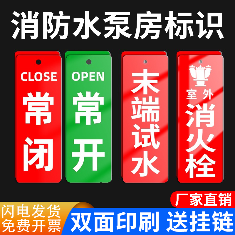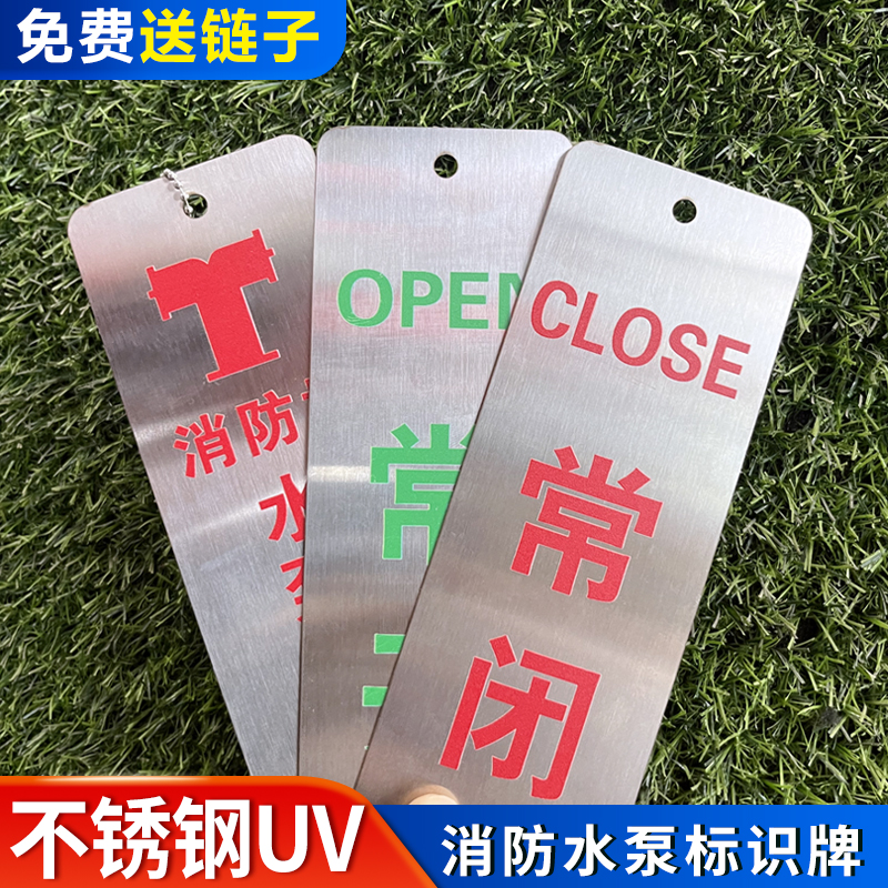 消防水泵标识牌不锈钢常开常闭标牌定做稳压泵房室内外消火栓警示牌末