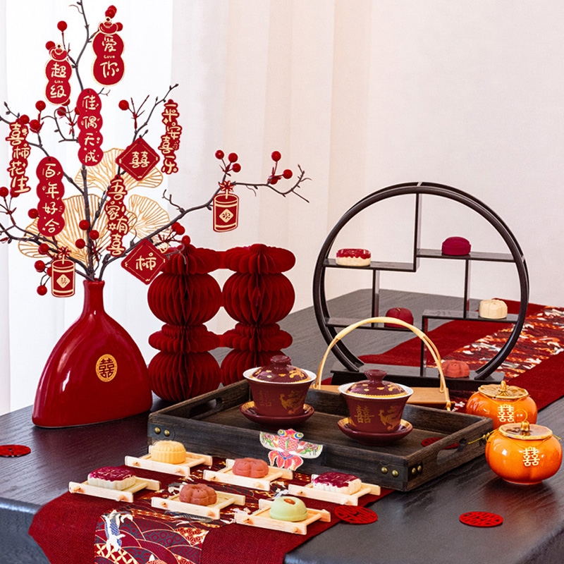 结婚茶几装饰婚房布置套装男方新房客厅桌面中式婚礼敬茶订婚摆台