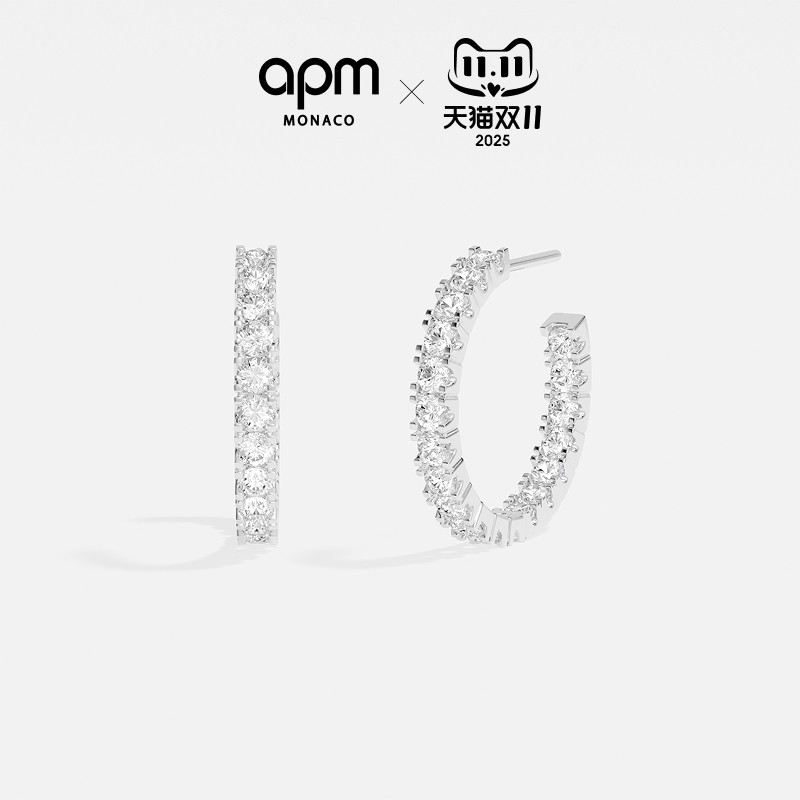 APM Monaco密镶圈形耳环银白色耳饰中号经典简约时尚礼物