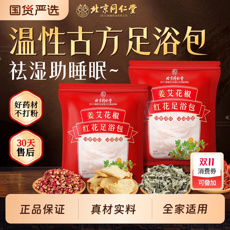 同仁堂花椒艾叶草生姜泡脚药包去祛湿气排毒助睡眠红花男女足浴包