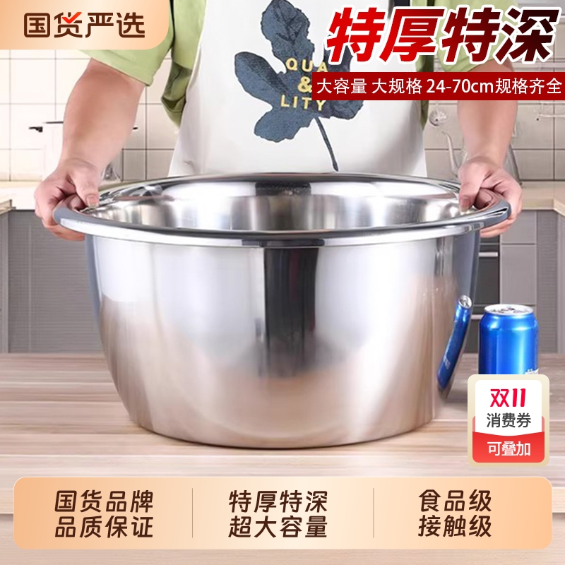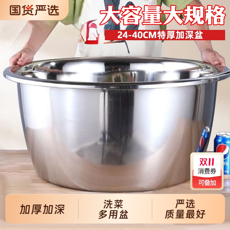 不锈钢盆菜盆家用厚和面盆商用厨房斗盆大号脸盆加深加厚的圆盆洗