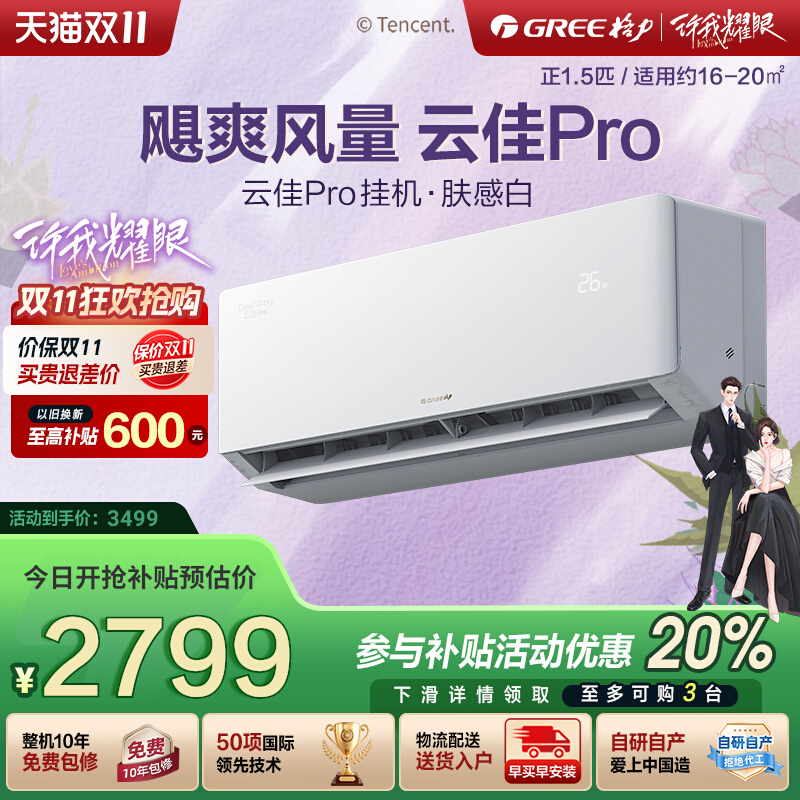 【Gree/格力官方】新一级能效大1匹家用变频冷暖空调挂机云佳P